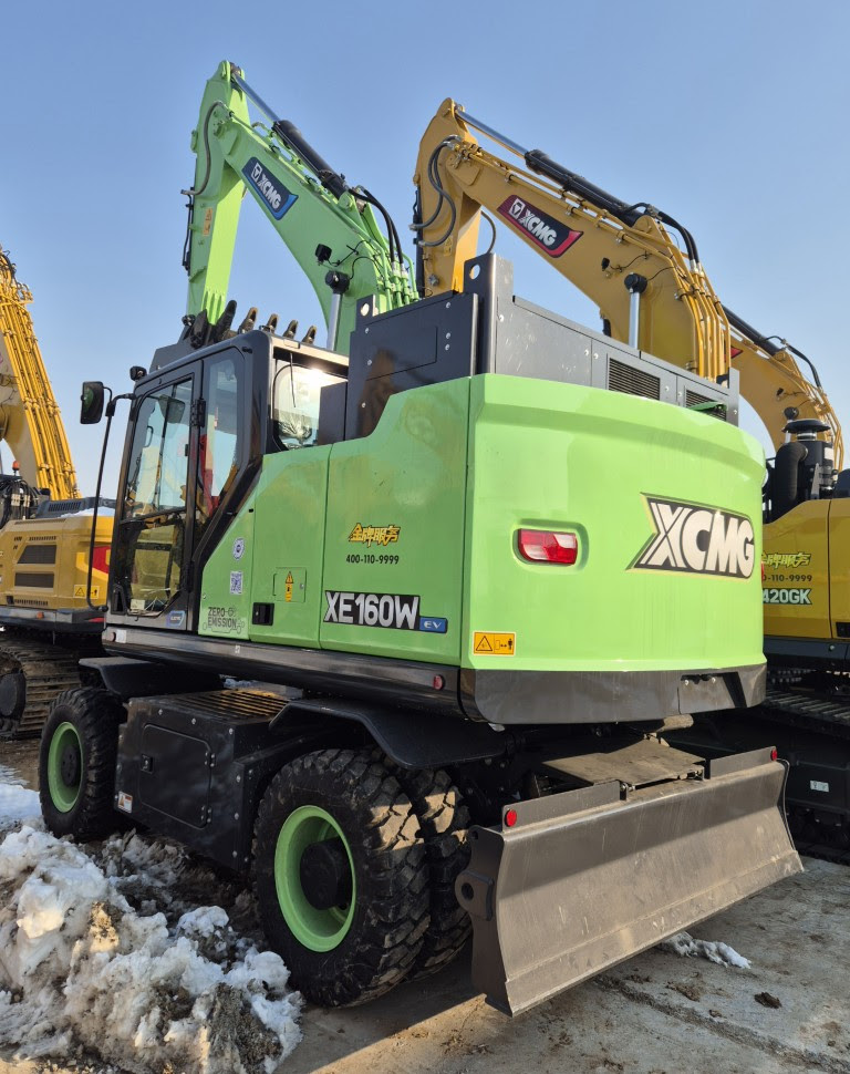 An XE160WEV wheeled excavator with swappable battery