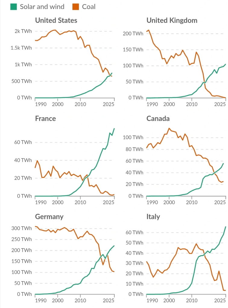 Follow these countries in the move away from coal and LNG to solar and wind to then pump hydro to keep our lake “batteries” full.