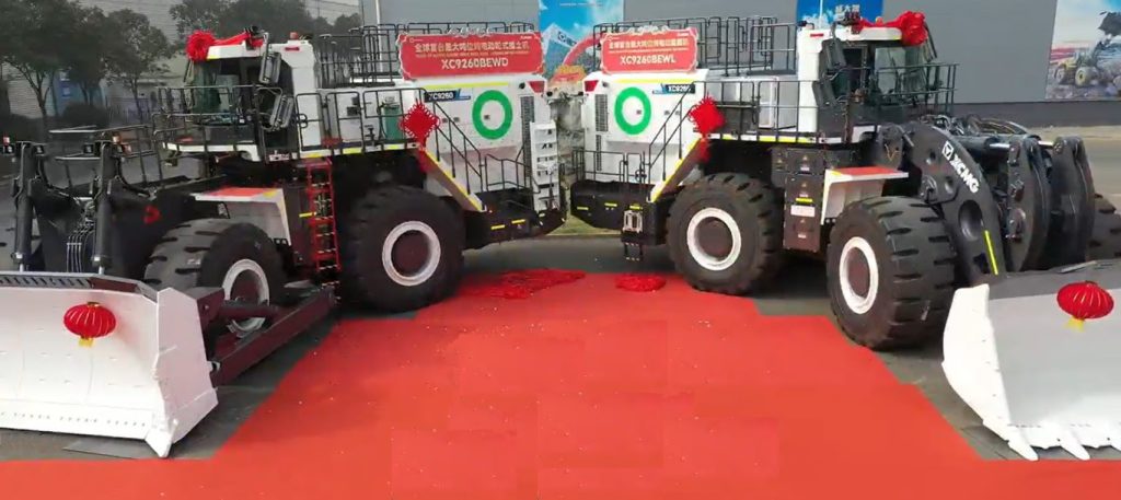 On a bit larger scale this 126t XC9260EV wheel loader and the same size wheeled dozer are now in testing for Fortescue. We had a quick look while in assembly at the factory last month, but no pictures permitted at that stage.