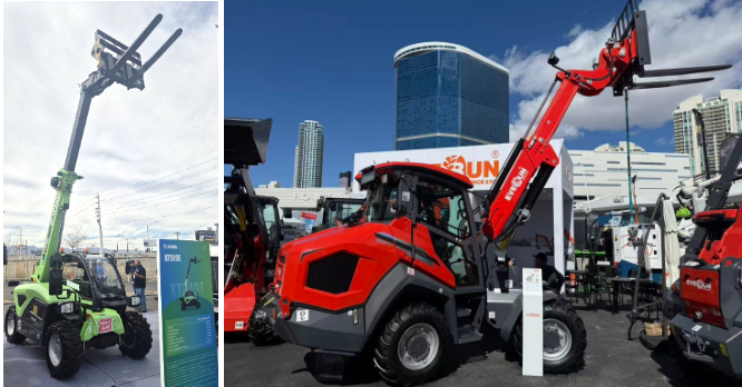 A couple of small telehandlers the XCMG EV XT519E, and the Perkins powered Everun