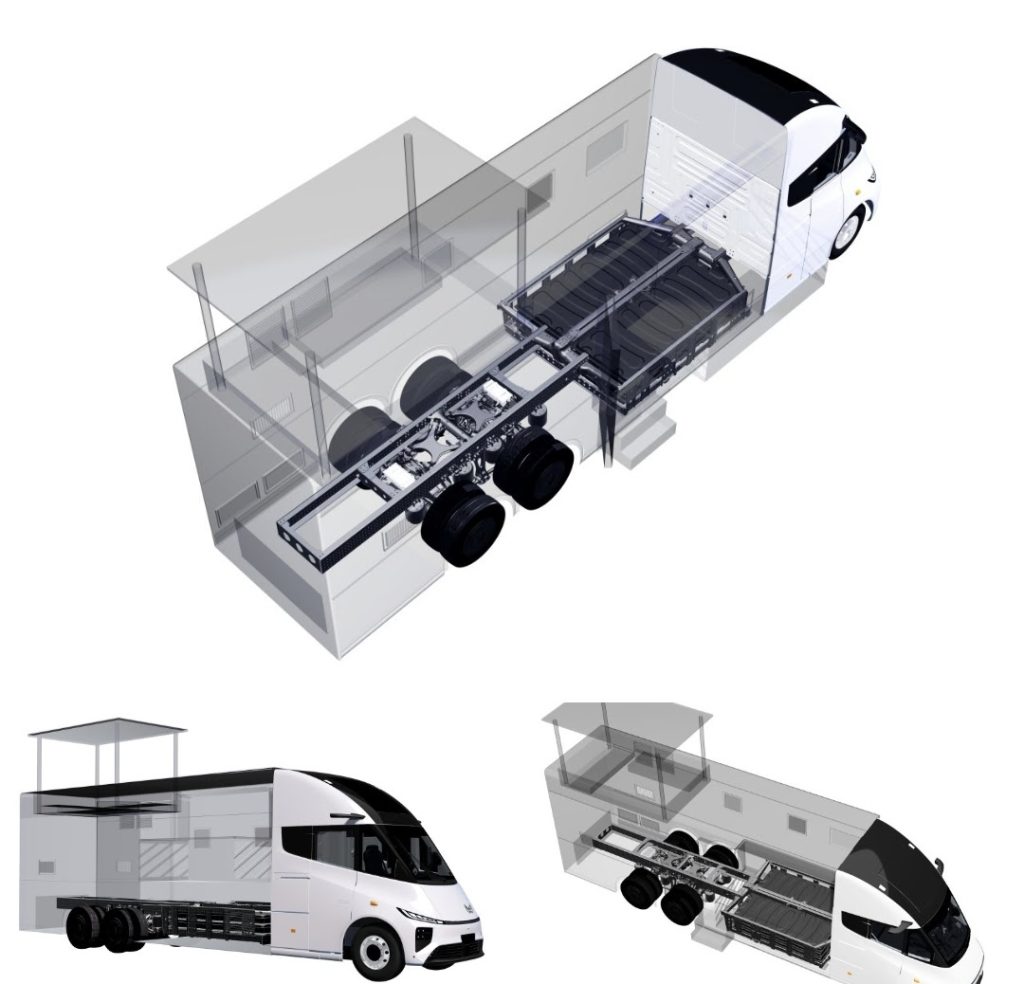 Windrose have announced a longer wheelbase version with a 800kWh battery, seen here as a recreational vehicle or perhaps a horse transporter.