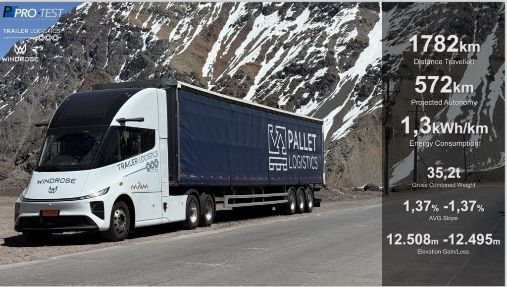 A recent Windrose video from California, showing a dual gun charging session achieving 772kW input. The test run used roughly 110kWh per 100km at 34t, including climbing Tejon Pass.